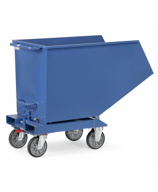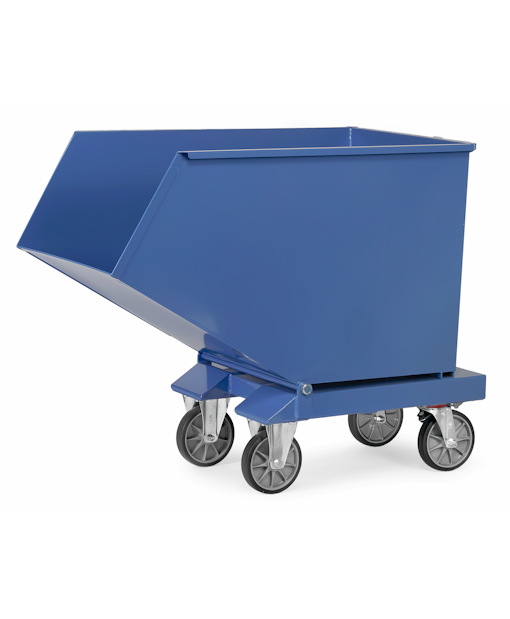 - Kippbar gelagerte Mulde aus 2 mm starkem Stahlblech für hohe Stabilität und Belastbarkeit.