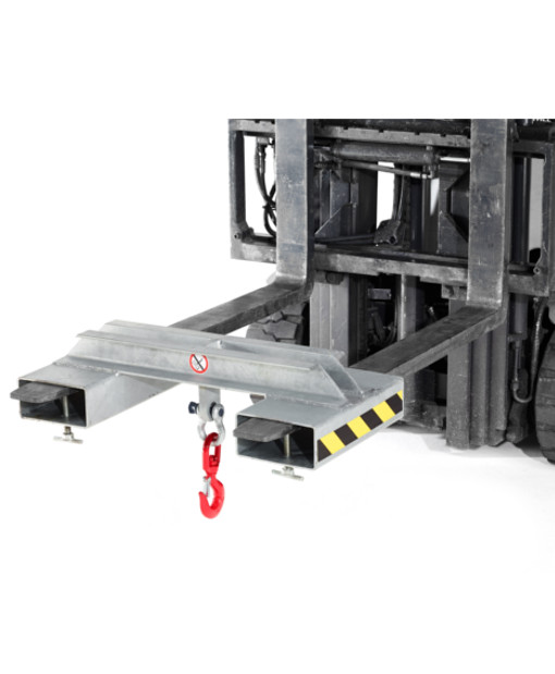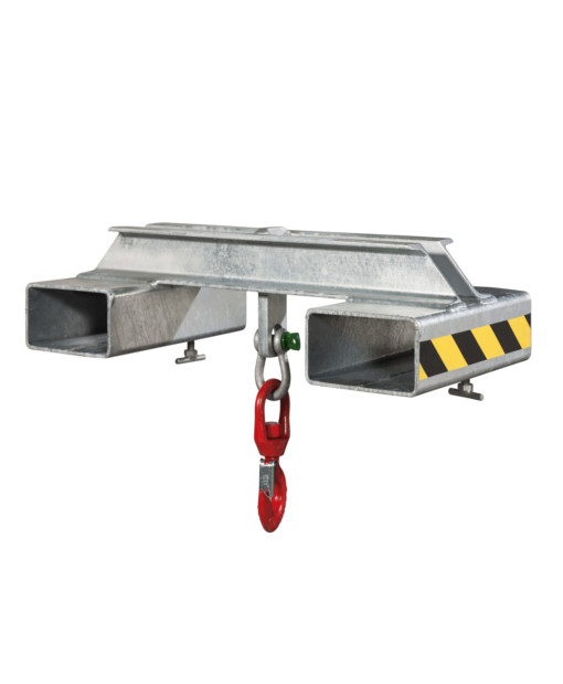 Die Verladetraverse Typ RT ist das ideale Anbaugerät, wenn es um einem sicheren innerbetrieblichen Transport geht. Es können am Haken zum Beispiel Kettengehänge, Fasszangen und viele weitere Produkte eingehängt werden.