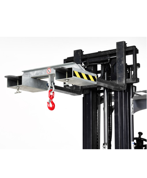 Eine Flügelschraube verhindert das Abrutschen von den Gabelzinken. Die robuste Stahlkonstruktion verfügt über einen drehbaren Sicherheitswirbelhaken, was es Ihnen ermöglicht, dieses Produkt universell einzusetzen.