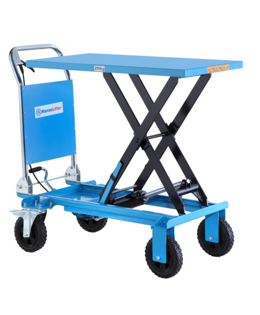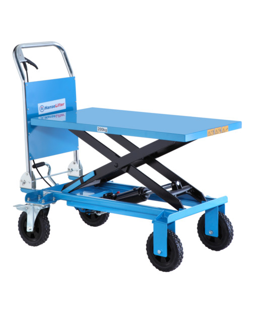 Der Geländehubtisch SPAG200 eignet sich besonders für die Arbeit in unwegsamen Gelände, wie Baustellen oder Schotterplätzen. Durch seine Gummibereifung und die sehr große Bodenfreiheit ist dieser Geländehubtisch besonders für den Geländeeinsatz geeignet. Hinzu kommt eine Tragfähigkeit von 200 kg und eine Qualitäts-Hydraulikpumpe, die mit rund 9 Hubschlägen ganz ausgefahren ist.