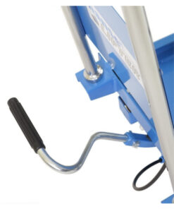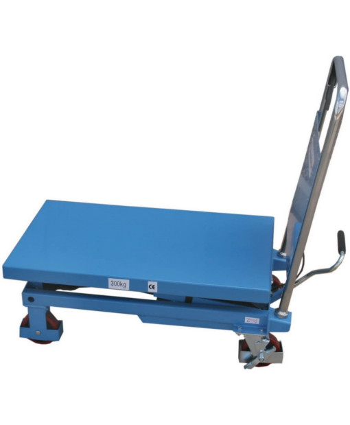 Der manuelle Scherenhubtischwagen SPA 300, mit einer Tragfähigkeit von 300 kg, hat einen klappbaren Handgriff. So kann dieser manuelle Scherenhubtisch platzsparend zusammengefaltet werden, wenn er nicht gebraucht wird. Im zusammengefalteten Zustand kann der manuelle Scherenhubtisch zum Beispiel einfach unter einer Werkbank gelagert werden.