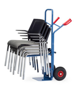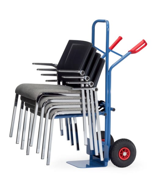 Die multifunktionale Stuhlkarre für den sicheren und effizienten Transport von gestapelten Stühlen und anderen Gütern.