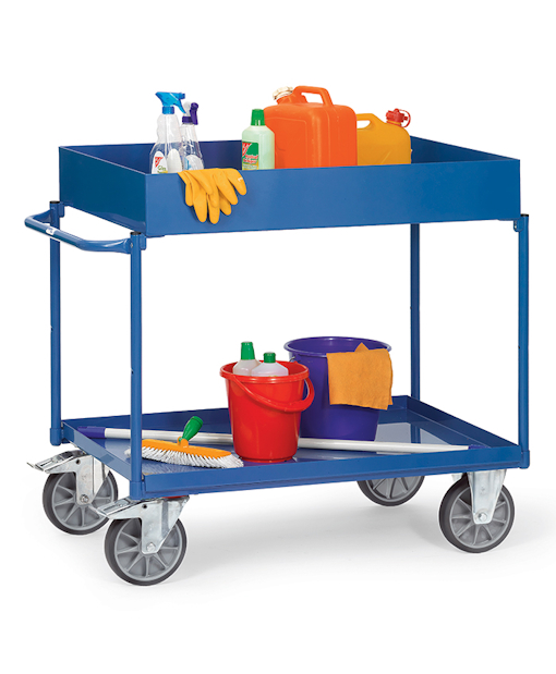 - Sicherer Transport: Feststeller an den Lenkrollen, EN 1757-3 Normung, 150mm hoher Rand an den Wannen.