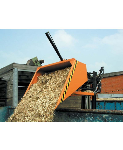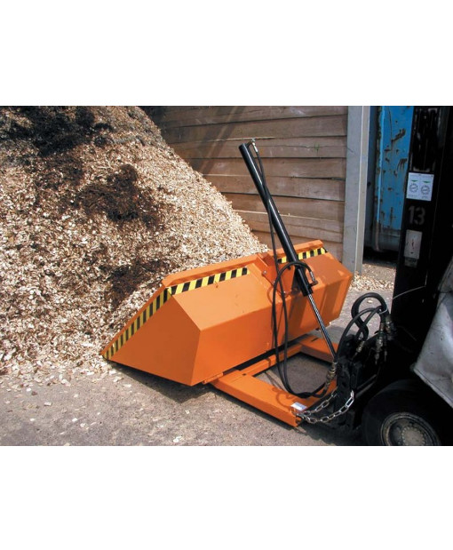 Die hydraulische Schaufel Typ DGS mit Doppelgelenk eignet sich ideal für die dosierte Entleerung von sperrigen und schweren Schüttgütern. Der Kippvorgang erfolgt über die Hydraulik des Staplers.
