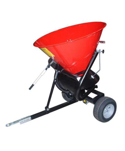 Der trichterförmige Streugutbehälter aus Stahl hat ein Fassungsvermögen von 105 bzw. 260 Liter. Mit einem Hebel lässt sich die Streurichtung und die Streubreite von 1 bis maximal 12 Meter einstellen. Als Option gibt es für diese Streuwagen auch die passendeAbdeckplane.